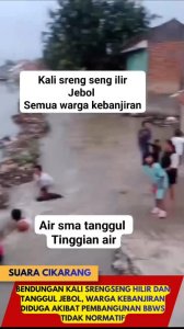 Diduga akibat pembangunan yang tidak normatif oleh pihak BBWS, bendungan di wilayah Kali Srengseng Hilir, Desa Sukamulya, Kecamatan Sukatani, Kabupaten Bekasi, mengalami kerusakan parah hingga jebol. Akibatnya, puluhan rumah warga di sekitar lokasi terendam banjir sejak Jumat malam (31/10).