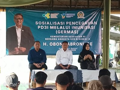 Anggota DPR RI dari Fraksi Partai Gerindra, H. Obon Tabroni, menggelar kegiatan reses sekaligus sosialisasi kesehatan terkait pencegahan Penyakit yang Dapat Dicegah Dengan Imunisasi (PD3I) dan Gerakan Masyarakat Hidup Sehat (Germas) di wilayah Kabupaten Bekasi, Sabtu (14/3).