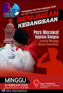 Ikatan Wartawan Online Indonesia (IWO Indonesia) Dewan Pimpinan Daerah (DPD) Kabupaten Karawang akan menggelar Renungan Kebangsaan di Tugu Kebangkitan Rengasdengklok, Kabupaten Karawang, Minggu (8/2/2026) sore.