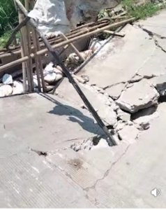 Menurut pantauan di lokasi, kerusakan jalan cukup parah, dengan bagian aspal yang tergerus dan membentuk lubang besar di salah satu sisi jalan. Kondisi ini membuat akses antar desa terganggu, terutama bagi pengguna kendaraan roda dua.