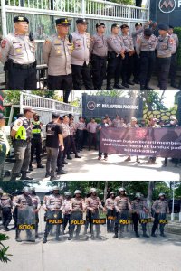 Personel gabungan Sebanyak 112 orang Beserta dari Polsek Kedungwaringin dan BKO Polres Metro Bekasi diterjunkan untuk Pengamanan Aksi Unjuk rasa di PT