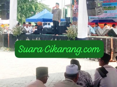 Bekasi Suara Cikarang.comPemerintah Kecamatan Pebayuran menggelar peringatan Maulid Nabi Muhammad SAW 1447 H di halaman kantor kecamatan, pada Kamis (25/09/2025). Kegiatan ini dihadiri ratusan warga, tokoh agama, aparatur desa, serta jajaran Muspika Kecamatan Pebayuran.
