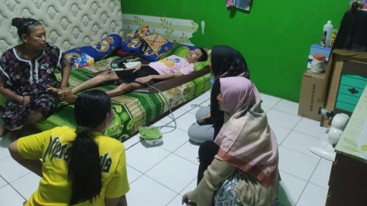 Kunjungan ini dilakukan untuk memberikan perhatian dan dukungan kepada Aji Priatna yang telah menderita sakit dan mengalami kelumpuhan hampir dua tahun. Kehadiran Bidan Desa dan Kader Posyandu disambut hangat oleh keluarga pasien.