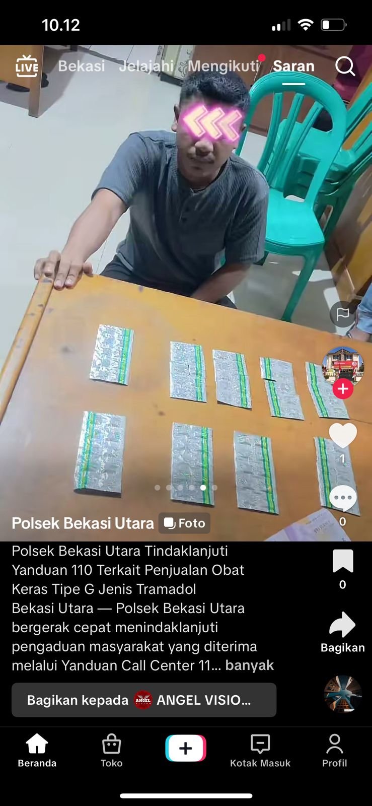 Setelah sempat terjadi perdebatan, terbukti bahwa toko tersebut menjual obat-obatan terlarang seperti Tramadol dan Eximer. Temuan barang bukti ini kemudian dilaporkan kepada aparat kepolisian setempat. Sekitar 20 menit kemudian, anggota dari Polsek Bekasi Utara tiba di lokasi untuk mengamankan barang bukti berupa obat golongan G beserta uang hasil penjualan, dan membawa oknum penjual untuk diproses lebih lanjut.