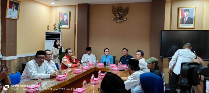 Rapat mengenai penertiban bangunan liar (Bangli) dan pengembalian fungsi di kali sepanjang Cikarang Utara sampai Karang bahagia di kantor kecamatan Cikarang Utara yang di lakukan oleh Pemkab Bekasi di mana dibutuhkan tindakan proteksi Pemkab Bekasi dan PJT II kaitan warga yang terdampak. Rabu (22/10/2025).