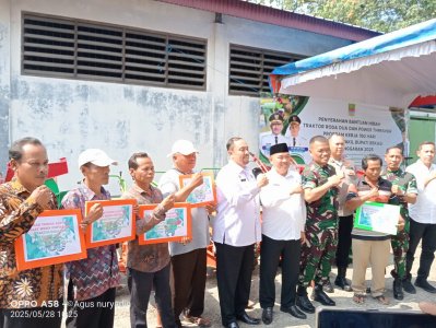 Kepala Dinas Pertanian H. Abdillah Ubay Dillah menjelaskan dalam acara penyerahan bantuan hibah alat pertanian seperti Traktor roda dua dan power Thresher, program penyediaan dan pengembangan sarana pertanian untuk tahun anggaran 2025.