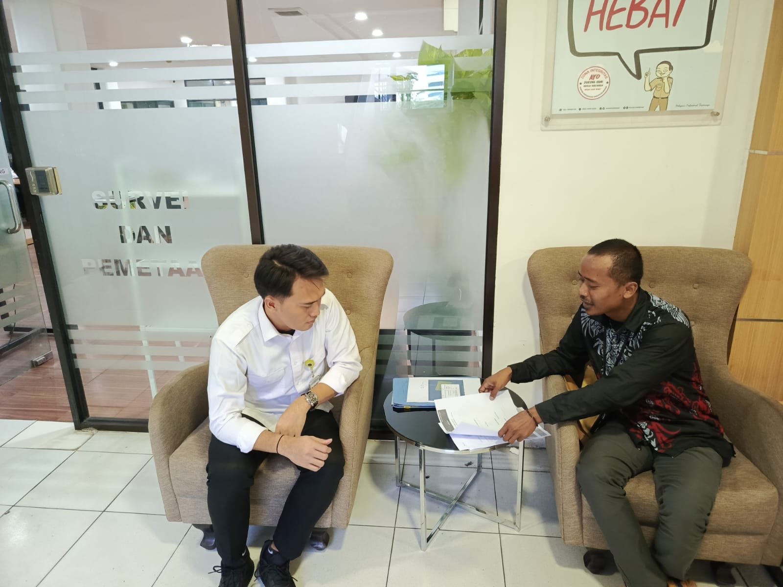 Selsai dengan kepala desa Sukamulya saya langsung menuju kantor bpn kabupaten Bekasi dan berhasil menemui sodara Rian selaku tim Yuridis Ptsl Desa Sukamulya,
