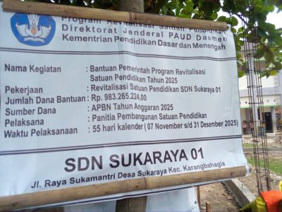 Pekerjaan : Revitalisasi satuan pendidikan SDN Sukaraya 01. Jumlah Dana Bantuan Rp 983. 265. .224 .00 ( Sembilan ratus Delapan puluh Tiga juta , Dua ratus dua puluh empat ribu ). Sumber Dana : APBN anggaran tahun 2025. Awak media bertanya ke tukang , Bang pondasinya pakai Ceker ayam ga tuh bng, tanya awak media kepada tukang ,jawab Tukang ga pakai Ceker ayam pak , sebab ga ada di RAB nya pakai Ceker ayam , itu keterangan dari Konsultan , kemudian awak media menanyakan lagi , abng sudah melihat RAB nya ,jawab Tukan saya belum melihat pak, itu cuma hanya tau dari Konsultan ,” Ujar tukang yang tidak mau menyebutkan namanya kepada awak media.