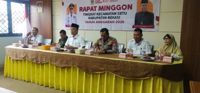 Rapat minggon tersebut dipimpin langsung oleh Camat Setu Drs. Djoko Dwidjatmoko, M.Si., serta dihadiri unsur Muspika Kecamatan Setu, Danramil 06/Setu, Sekcam, para kepala desa, kepala puskesmas, UPTD, BPD, Karang Taruna, dan unsur terkait lainnya.