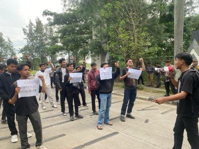 Terkait adanya dugaan Tindak Pidana Korupsi dalam rehabilitasi total SMPN 2 Pebayuran dan SMPN 1 Karangbahagia, Puluhan Massa aksi yang tergabung dalam Insitut Kajian Strategis (INKASTRA). menggelar aksi unjuk rasa di depan halaman Pemkab Bekasi, Rabu (05/10/2025).