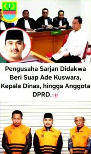 Sementara itu, Sarjan memberikan uang sebesar Rp11,4 miliar kepada Ade Kuswara melalui ayahnya, HM Kunang sebesar Rp1 miliar, Sugiarto sebesar Rp3,3 miliar, Ricki Yuda Bahtiar alias Nyai sebesar Rp5,1 miliar, dan Rahmat bin Sawin alias Acep sebesar Rp2 miliar, Pungkasnya.
