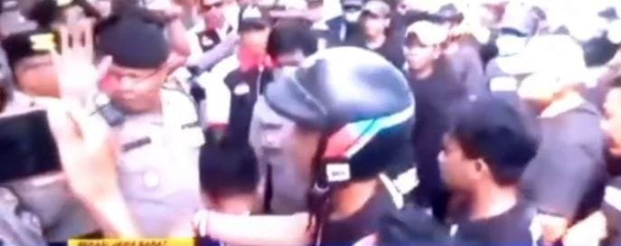 Masa tergabung dalam Solidaritas transparasi intelektual,Pemerhati Indonesia saling dorong dengan petugas yang berjalannya unjuk rasa di depan Kantor Badan Pertanahan Nasional ( BPN ) di Cikarang Selatan Kabupaten Bekasi Jawa Barat, Meraka berusaha menerobos penjagaan polisi pintu gerbang BPN, masa mempertanyakan pihak BPN yang menerbitkan Sertifikat dan Hak Guna Bangunan ( HGB ) di laut Tarumajaya .